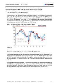 Volkswirtschaft/Statistik 18.12.2025 Geschäftsklima Metall (Bund), Dezember 2025 I. ifo Geschäftsklima in der M+E-Industrie Die Stimmung in der deutschen Metall- und Elektro-Industrie…