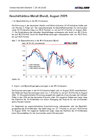 Volkswirtschaft/Statistik 26.08.2025 Geschäftsklima Metall (Bund), August 2025 I. ifo Geschäftsklima in der M+E-Industrie Die Stimmung in der deutschen Metall- und Elektro-Industrie…