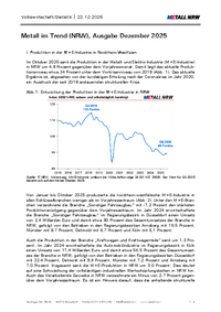 Volkswirtschaft/Statistik 22.12.2025 Metall im Trend (NRW), Ausgabe Dezember 2025 I. Produktion in der M+E-Industrie in Nordrhein-Westfalen Im Oktober 2025 sank die Produktion in der Metall- und…