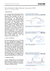 WIRTSCHAFT STATISTIK INFOS Geschäftsklima Metall (Bund), Dezember 2022 Mittwoch, 21. Dezember 2022 I. Geschäftsklima 100 90 Geschäftslage 80 Geschäftserwartungen 70 Geschäftsklima 60 Jun 19 …
